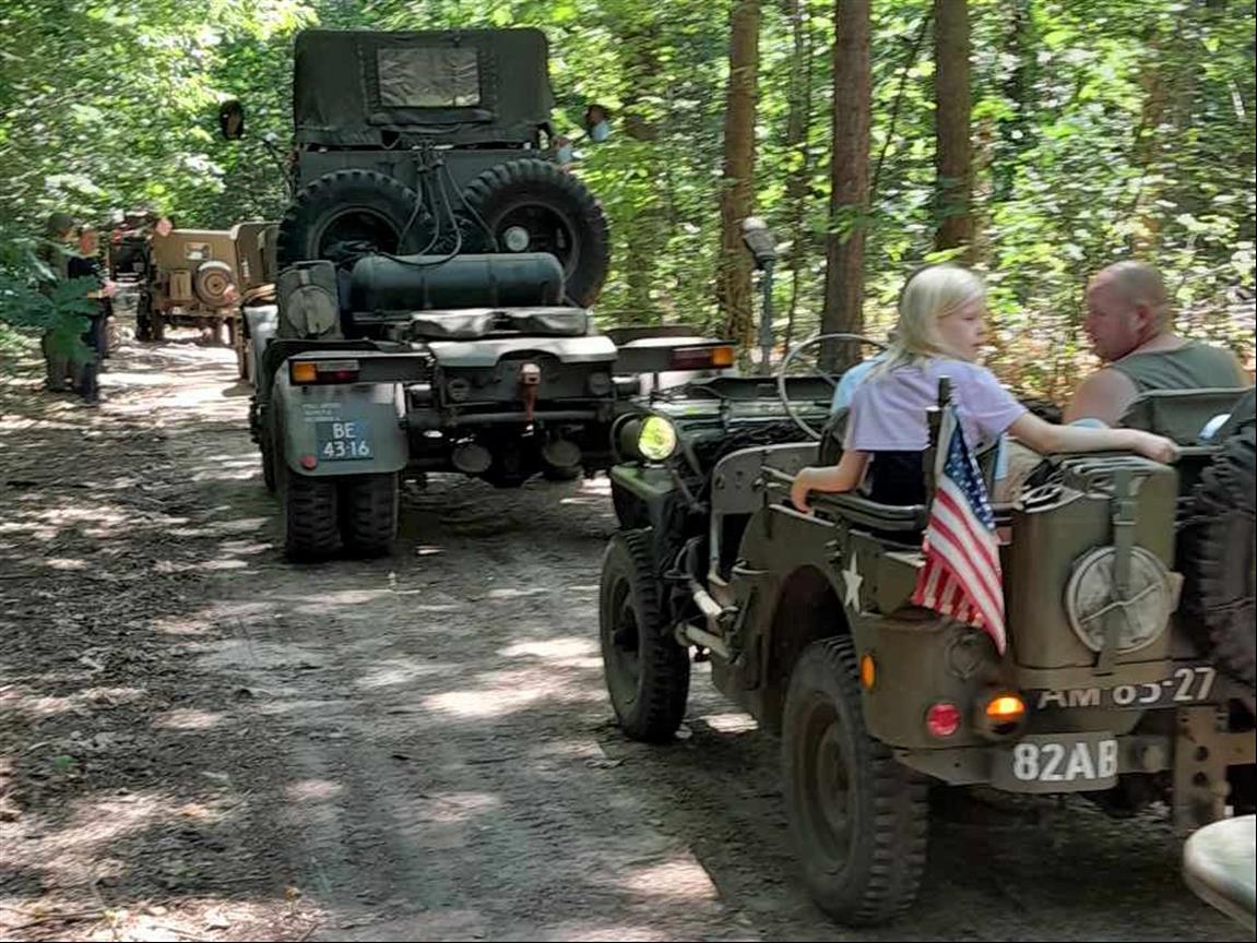 Le samedi matin, les organisateurs ont tracé un magnifique itinéraire dans la région, un superbe parcours off-road principalement en forêt. Nous bénéficions d'un ciel bleu immaculé. Quelle chance ! Pour le retour au camp, cette année, nous ne traverserons malheureusement pas la base aérienne via la grande piste d'envol dont l’accès est barré car l’armée américaine l’utilise dans le cadre de son soutien à l’armée ukrainienne. Jadis, cette piste offrait une belle opportunité aux plus jeunes de prendre le volant de la jeep de papa, en toute quiétude. Après le repas, une belle soirée, nous est offerte. Elle a toujours un formidable succès !